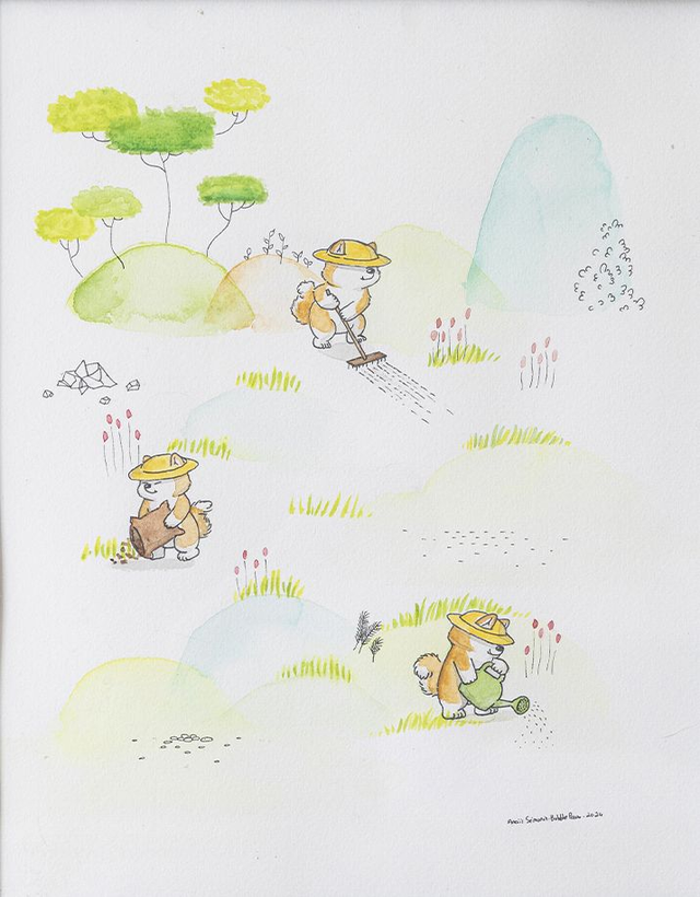 Rien de plus apaisant que ce petit akita japonais s'occupant de son jardin zen.